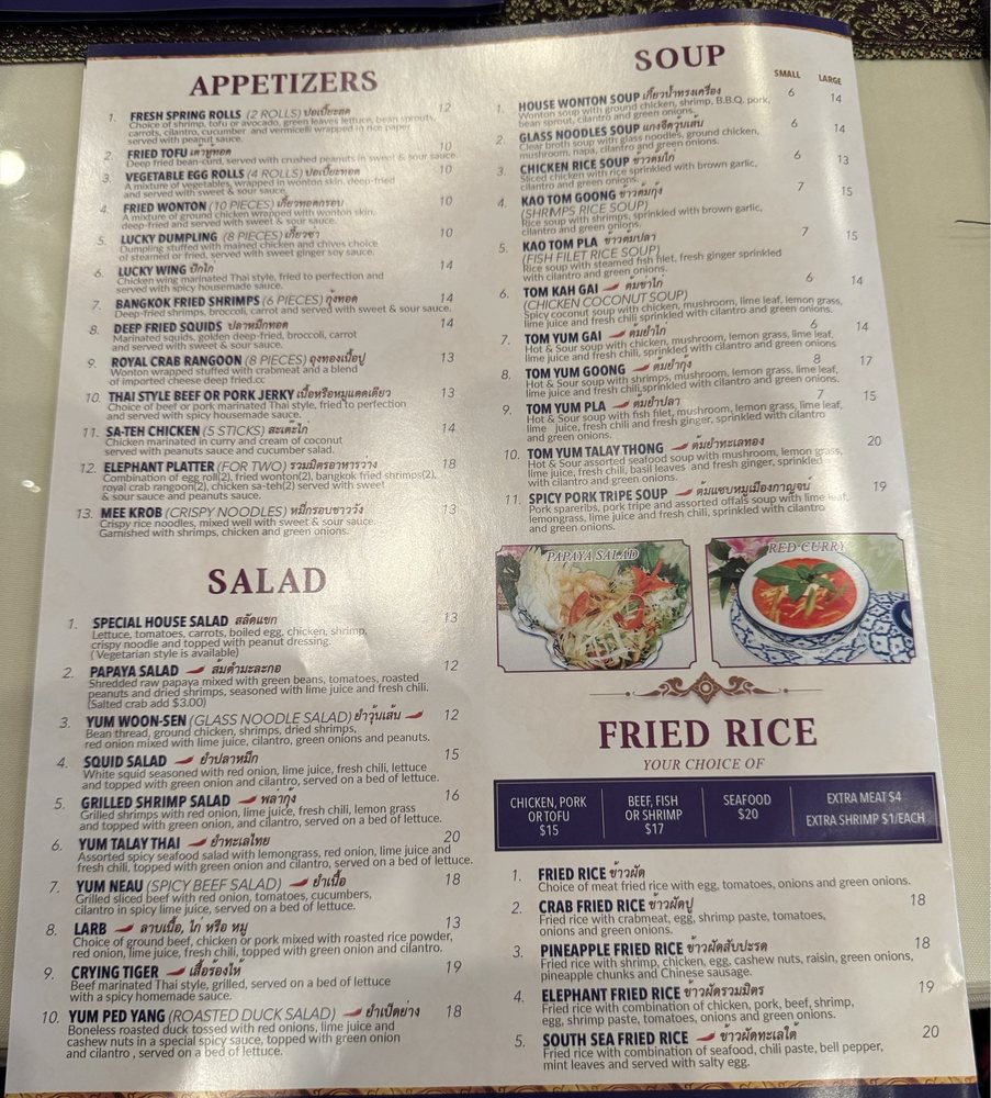 Introducing the Menu at Lucky Elephant Thai Cuisine